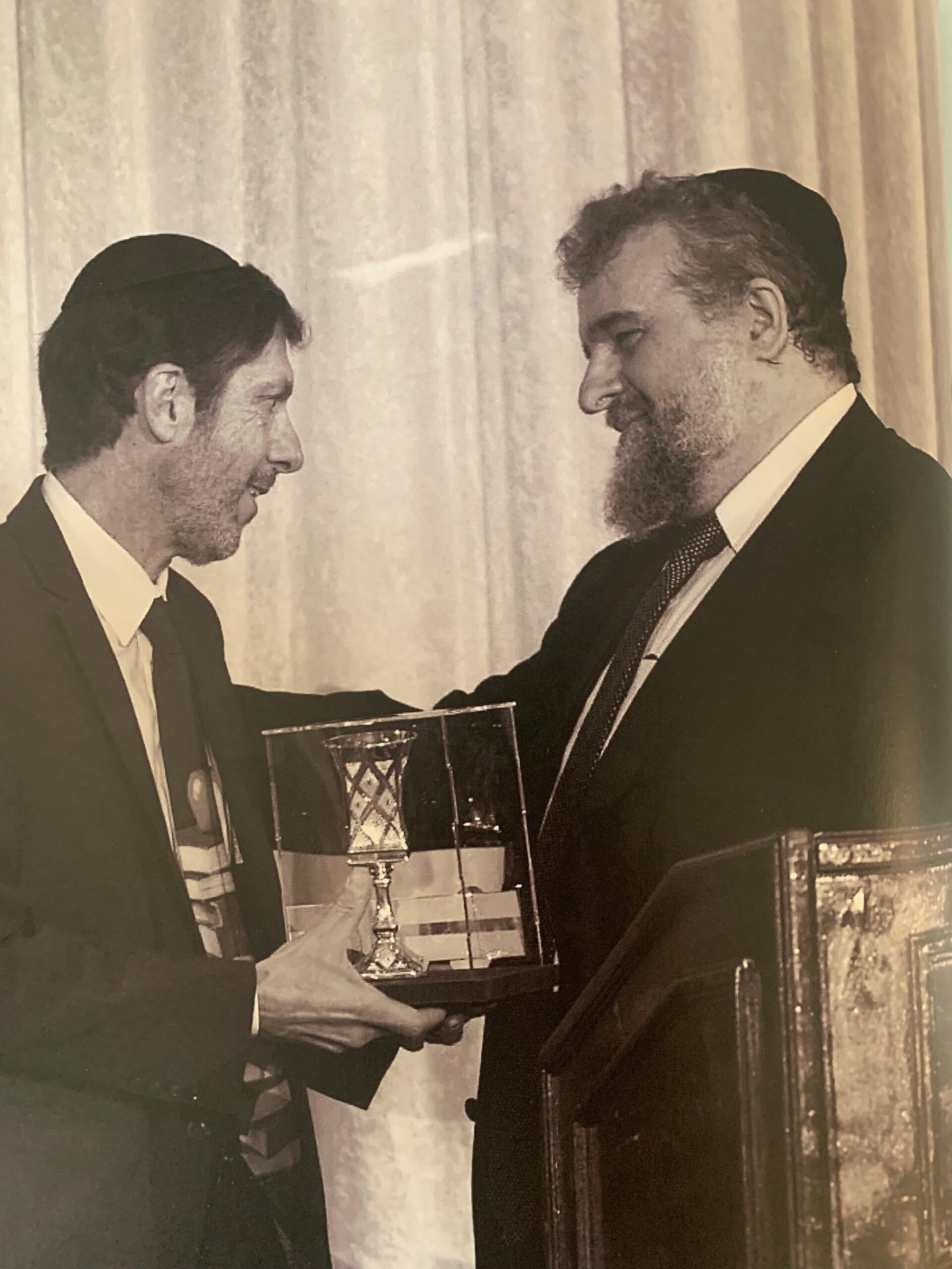 Rabbi Yitzchak Zweig, President of the Talmudic University consortium of schools, announces Dr. Karp as the recipient of the Yeshiva Elementary School, Yeshiva Middle School and Aderes Educational Leadership Award.
