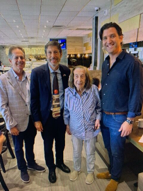 Aventura Commissioner Hon. Paul Kruss, 101-years young patron at Mo’s and Hon. Gabe Groisman