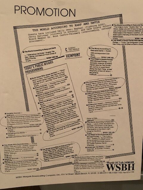 After Meet the Press, This Week With David Brinkley, and Face the Nation, you could hear The World According to Karp and Davis with Dr. Martin Karp and Mark Anthony Davis on WSBH-AM.