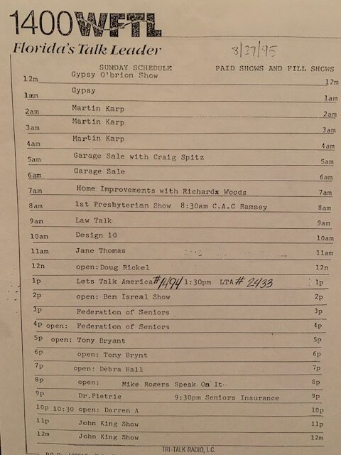 The Doc Martin Show from 2 a.m. to 5 a.m. on WFTL-AM. “You lucky people.”
